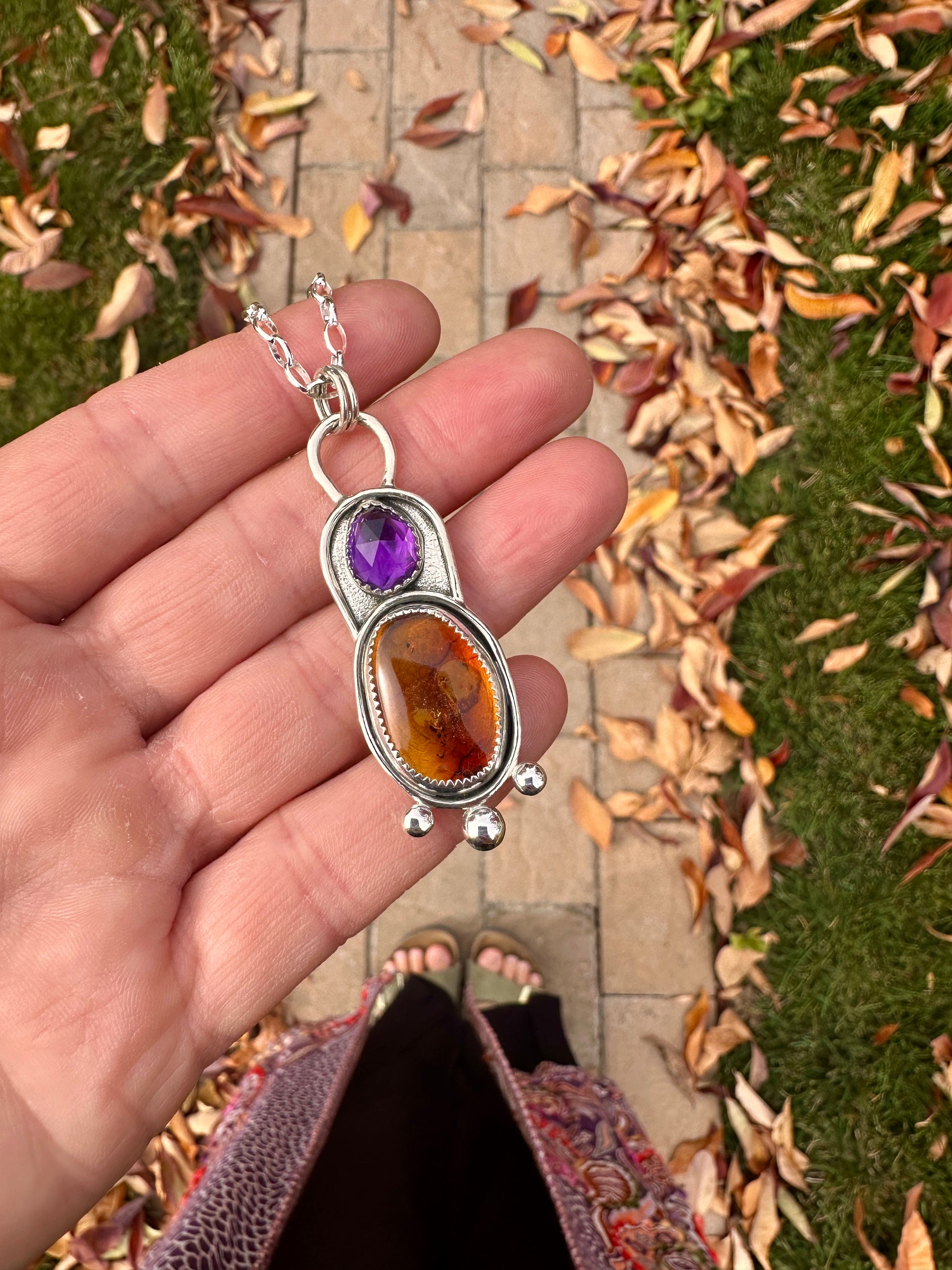 Cascade talisman | Amethyst + Baltic amber