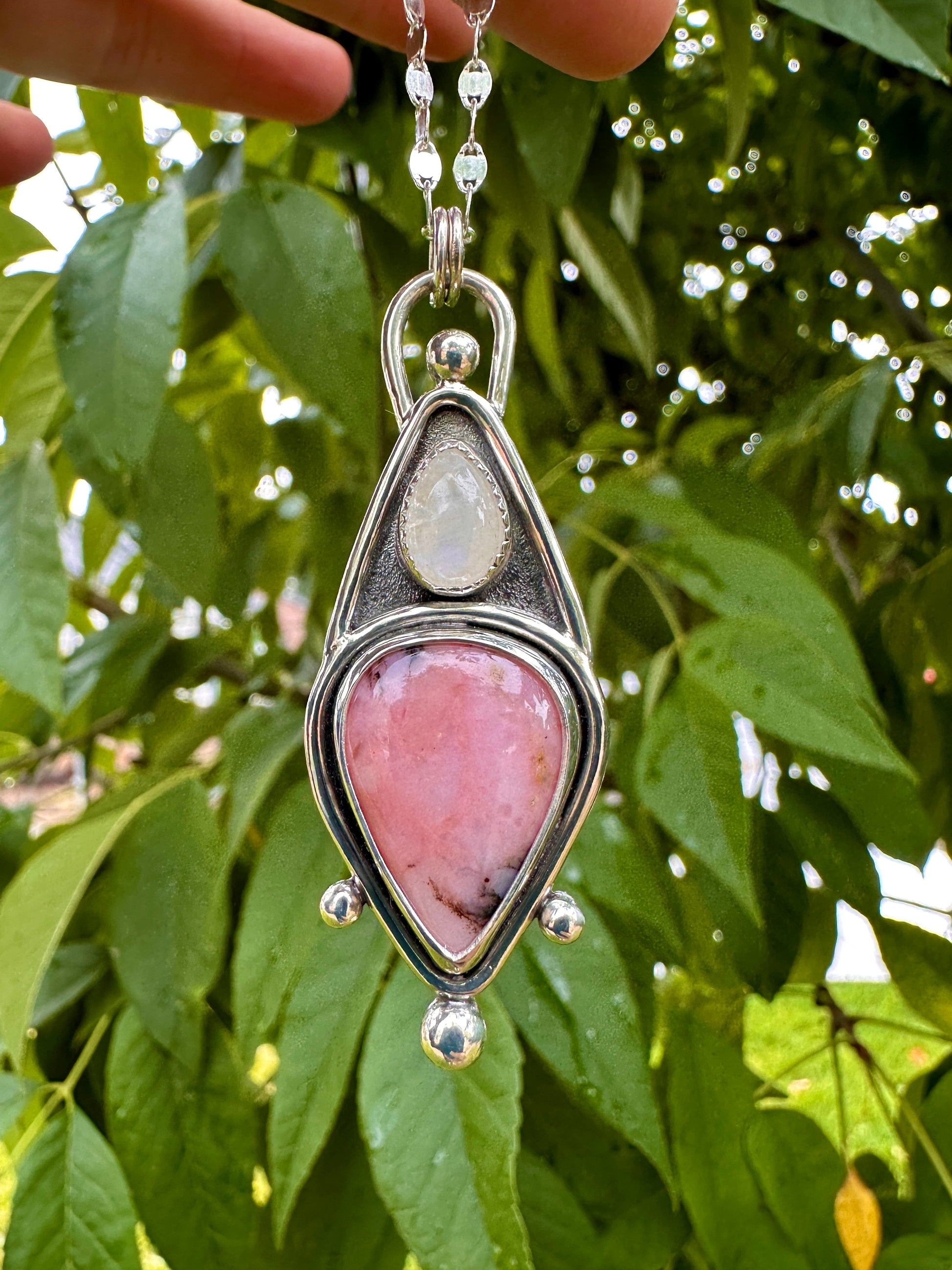 Cascade talisman | Rainbow moonstone & pink dendritic opal #1